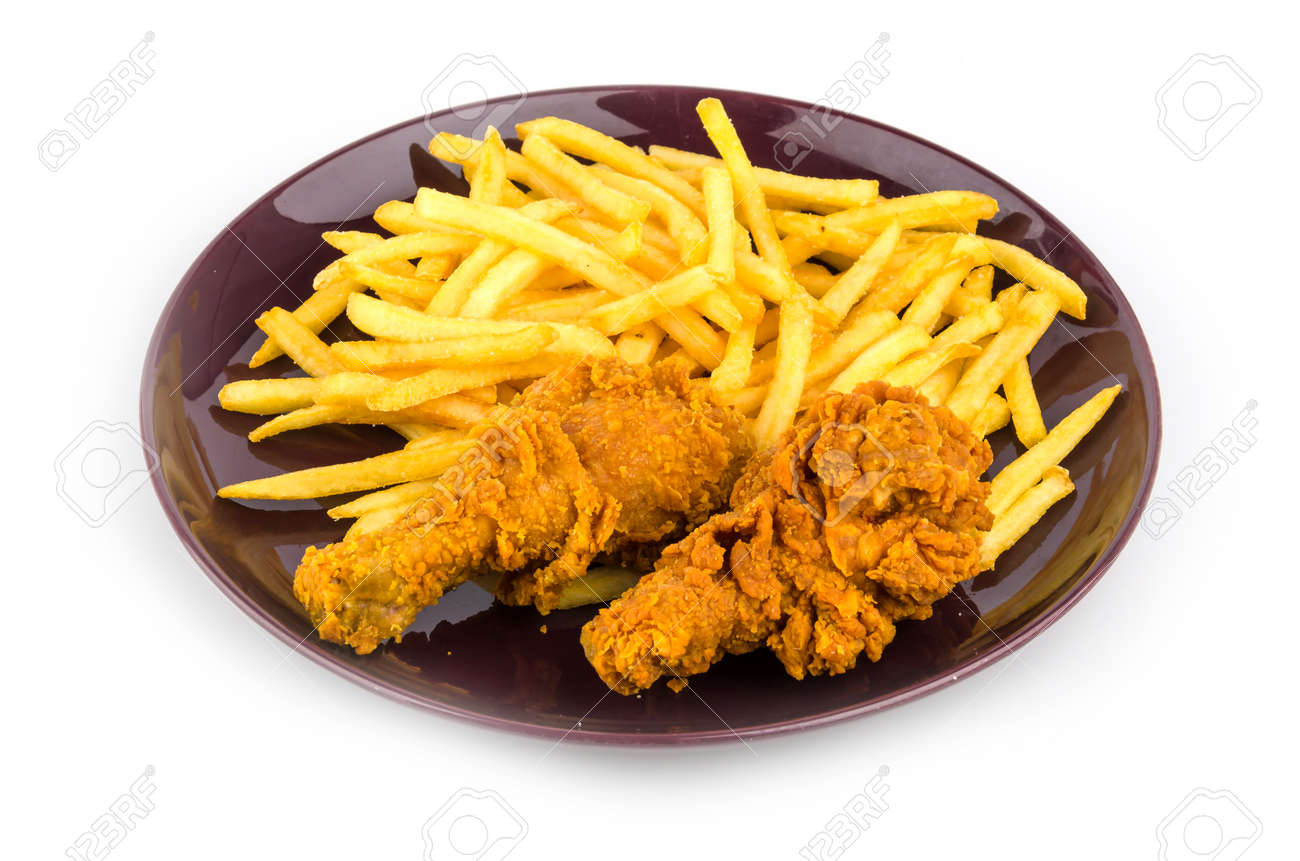 Pecho de pollo acompañado de papas fritas, salsas y ensalada
